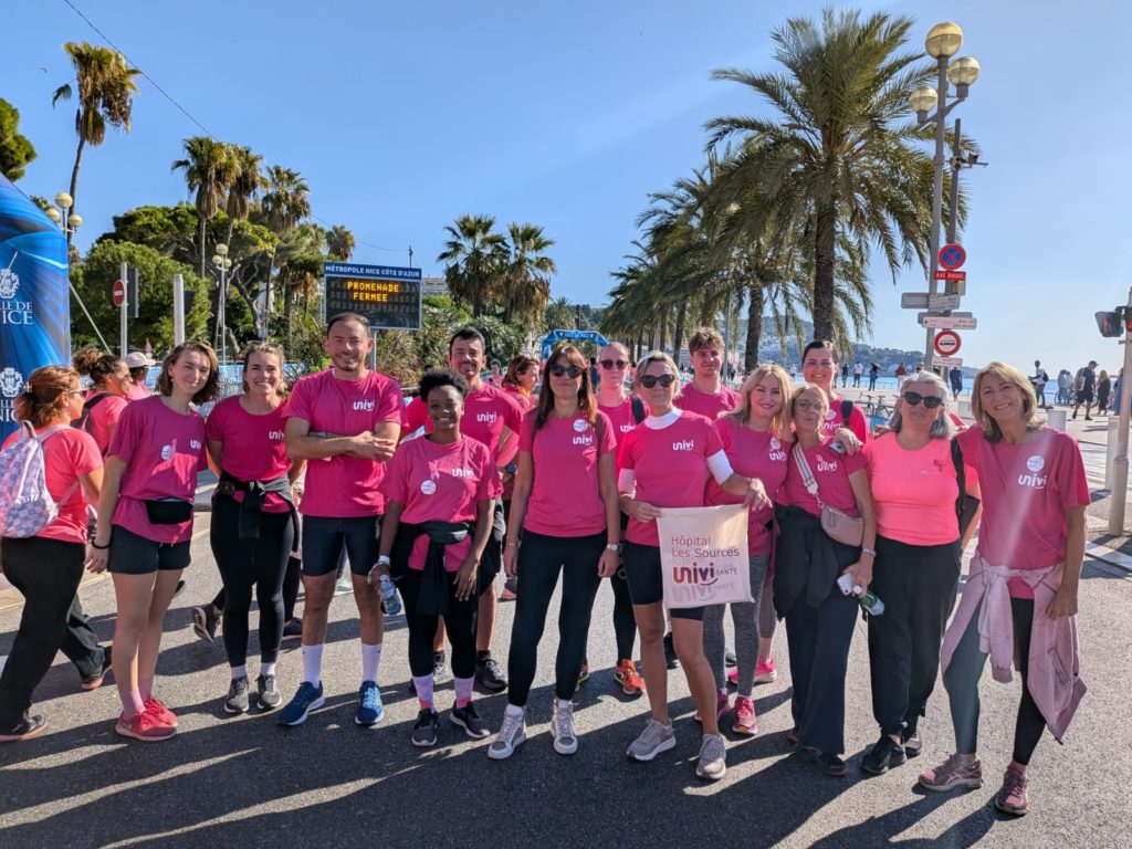 Dimanche 5 octobre, une quarantaine de salariés issus de l’Hôpital Privé Les Sources – NICE et de l’EHPAD Les Aquarelles (Mouans-Sartoux) a fièrement représenté UNIVI lors de la course solidaire Jogging Rose où près de 5 000 participants ont couru dans les rues de Nice pour la lutte contre le cancer du sein.