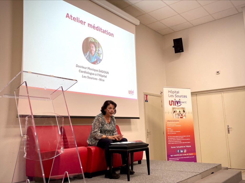 L’événement a débuté dès 17 h avec un temps d’accueil d’information et de bien-être (massage assis et shiatsu) avec les associations partenaires. La soirée s’est poursuivie par une séance de méditation avec le Docteur Monique DADOUN, médecin cardiologue à l’hôpital Les Sources.