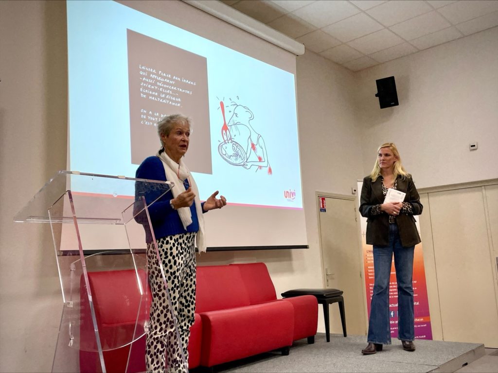 Annick PARENT, aidante, autrice et illustratrice a ensuite présenté son ouvrage « Aidant – Aider sans s’oublier » et l’athlète Handisport Delya BOULAGHLEM a raconté sa relation de confiance avec son guide.